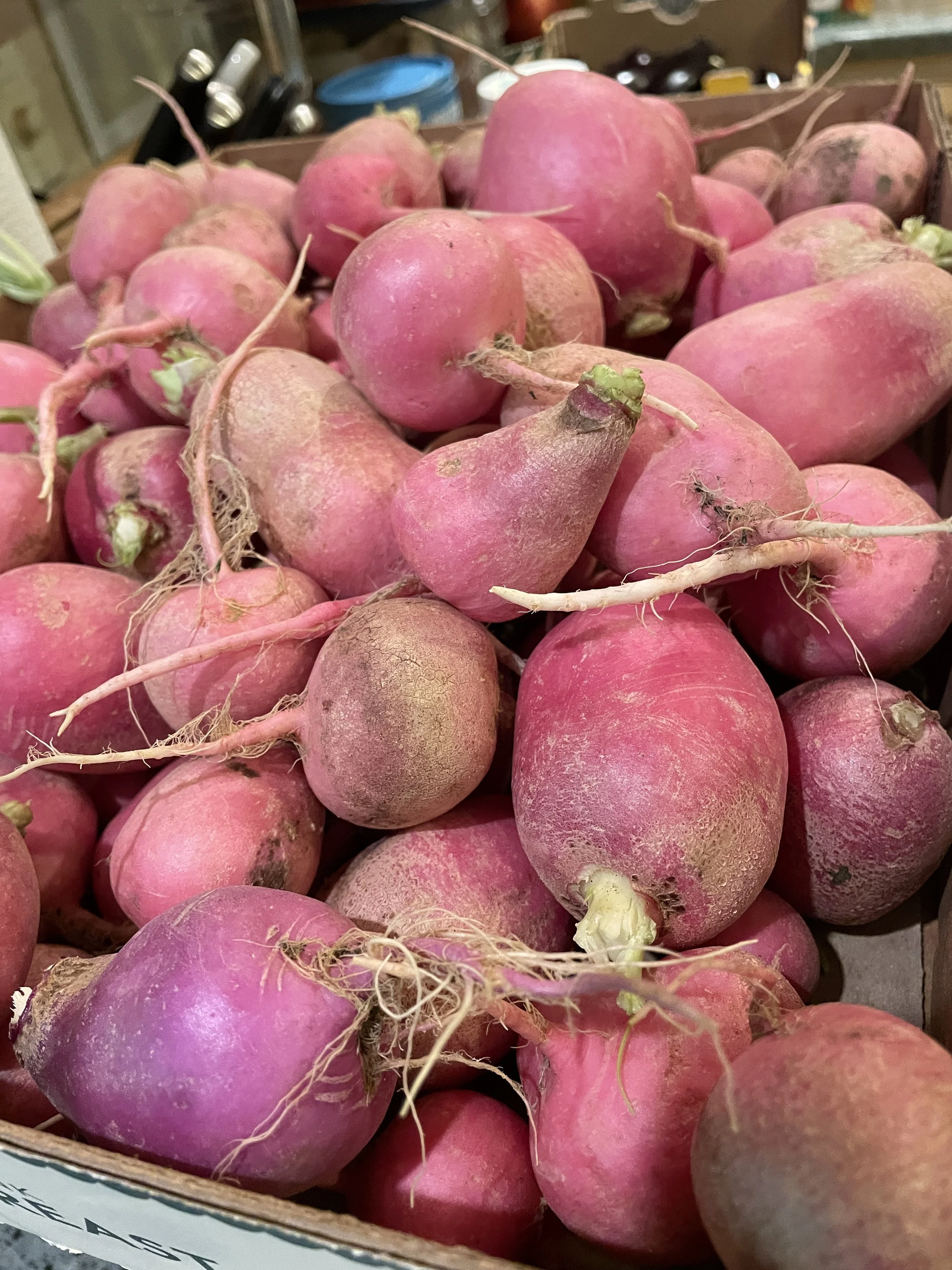 This week, while I wrestled with the glamorous joys of yet another resubmitted tax interview and resizing the images in The Bread of Dreams to allow its presence in libraries and brick and mortar stores, (Indie Author paperwork, anyone?), I also had my hands full with peppers, shishitos, eggplants, and the most beautiful pile of radishes.